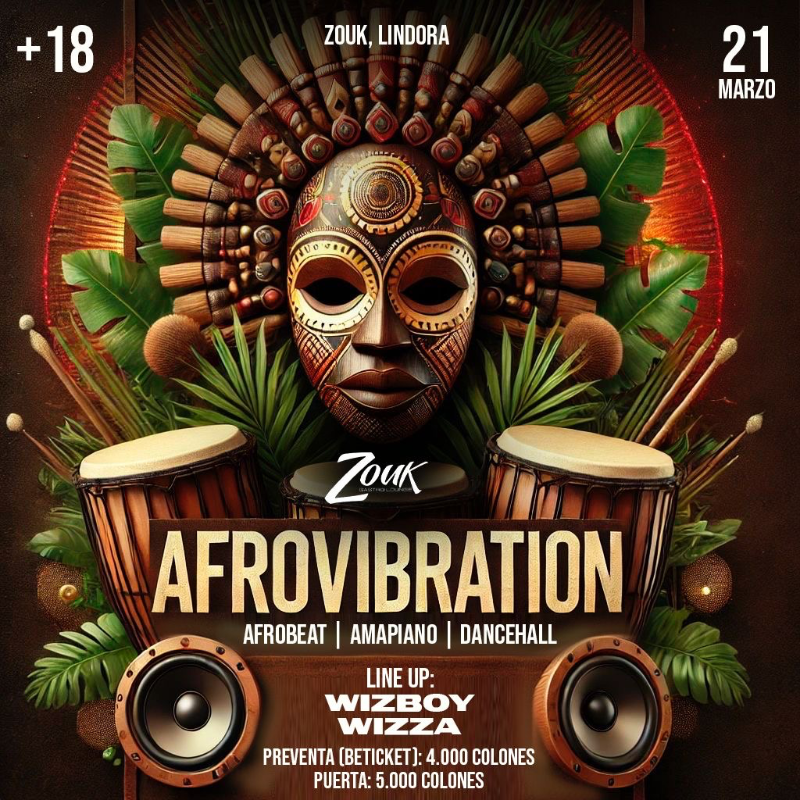 ~ AfroVibration ~ te trae una noche que refleja la esencia vibrante y sofisticada del AfroBeats, Amapiano y Dancehall. Ritmos explosivos, buena vibra y la mejor música en un ambiente envolvente.