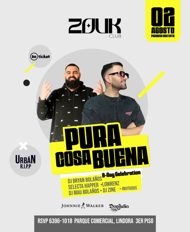 ¡🎉 Este Sábado 2 de agosto, Zouk Club se llena de energía con "Pura Cosa Buena"! 🎶